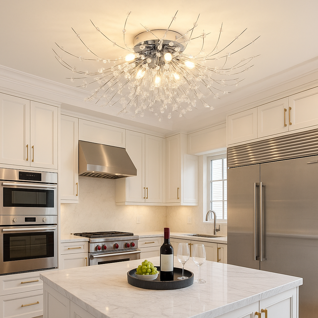 Un plafonnier au design pissenlit, alliant éclat raffiné et modernité, pour sublimer chaque espace de lumière et d’élégance.